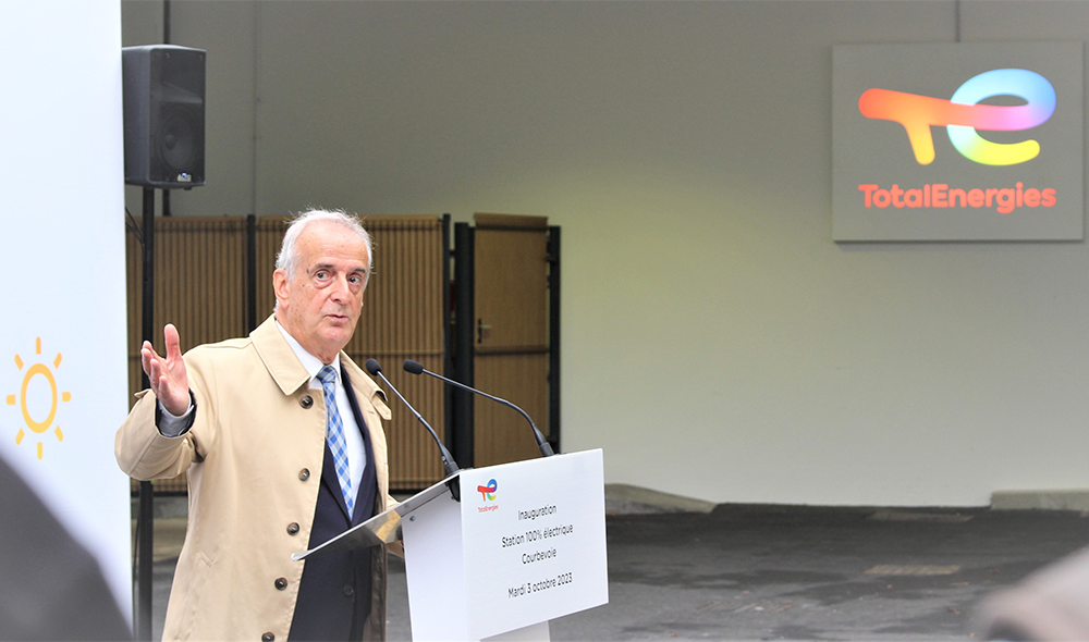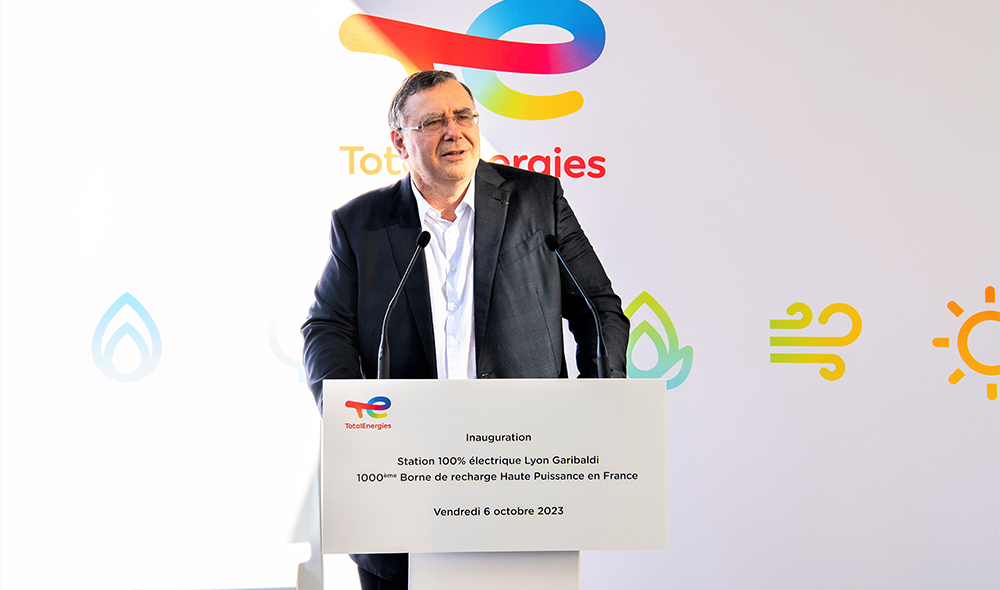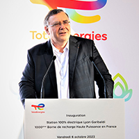 Á l’occasion de l’inauguration de la 5ème station 100 % électrique de TotalEnergies en France (Lyon, Relais Garibaldi), Patrick Pouyanné,