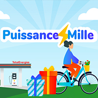 Mots-clés : 1000 bornes / bornes HPC / Courbevoie / Jeu-concours / Lyon / mobilité / Patrick Pouyanné / Puissance Mille / Recharge électrique / stations 100% EV