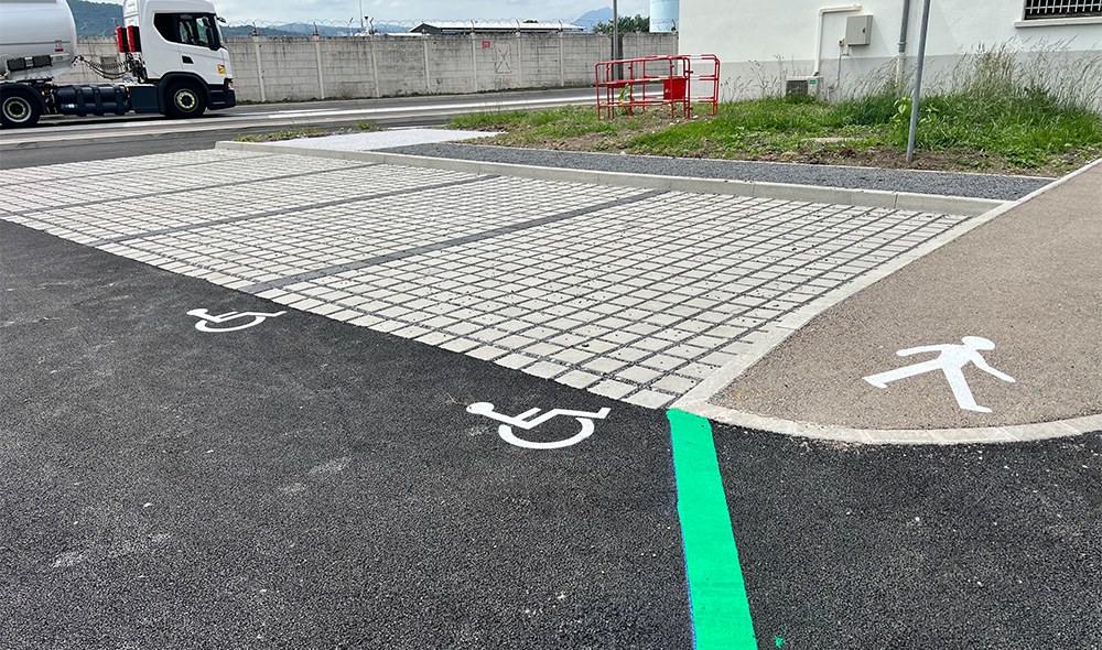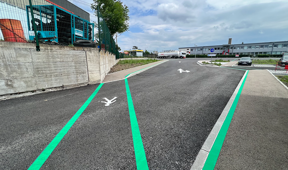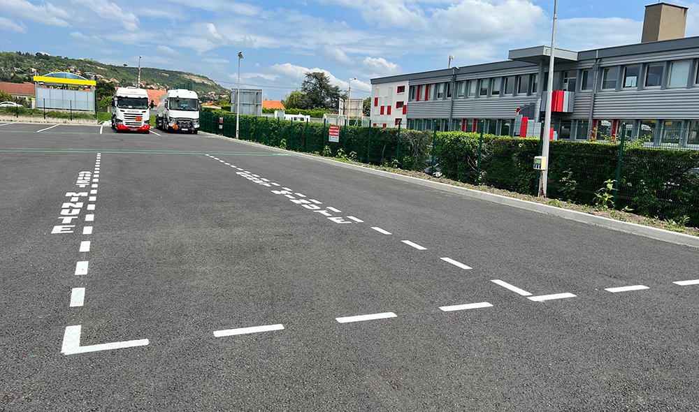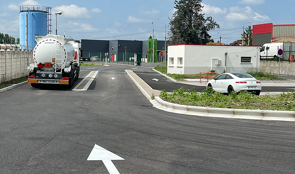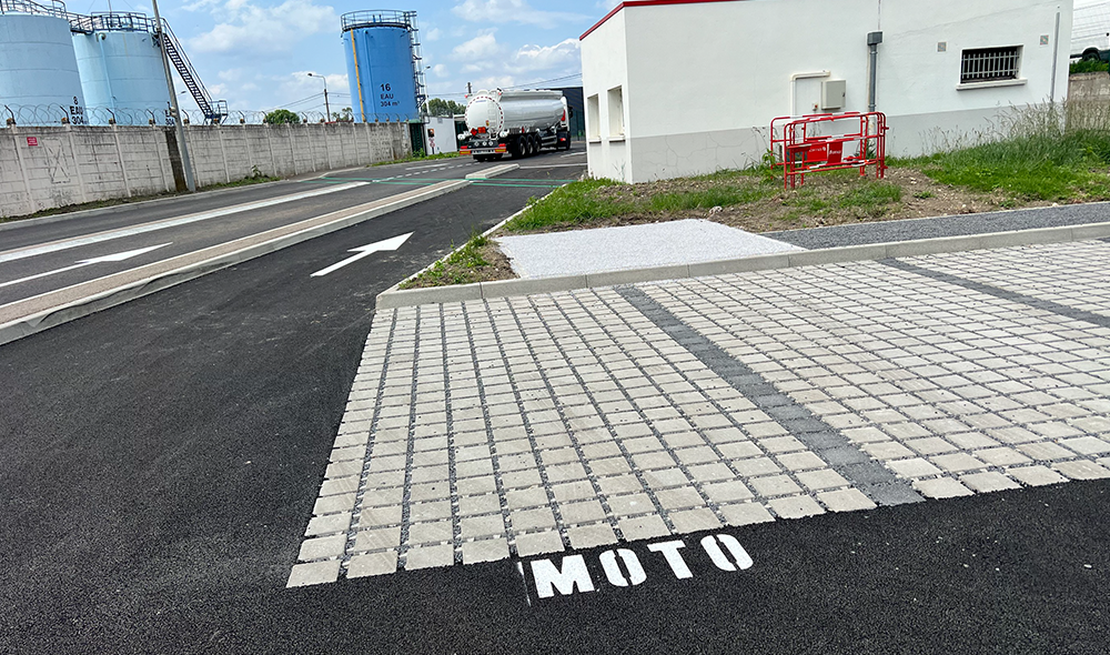 Marjorie MARTELES : Le parking du dépôt pétrolier de Cournon d’Auvergne accueille le passage d’environ 64 camions et 10 véhicules légers par jour, il est donc soumis à de nombreuses manœuvres qui sollicitent sa structure ! En conséquence, nous avons décidé de repenser l’entièreté de cet espace, notamment en vue d’adapter la voirie aux règles de sécurité.