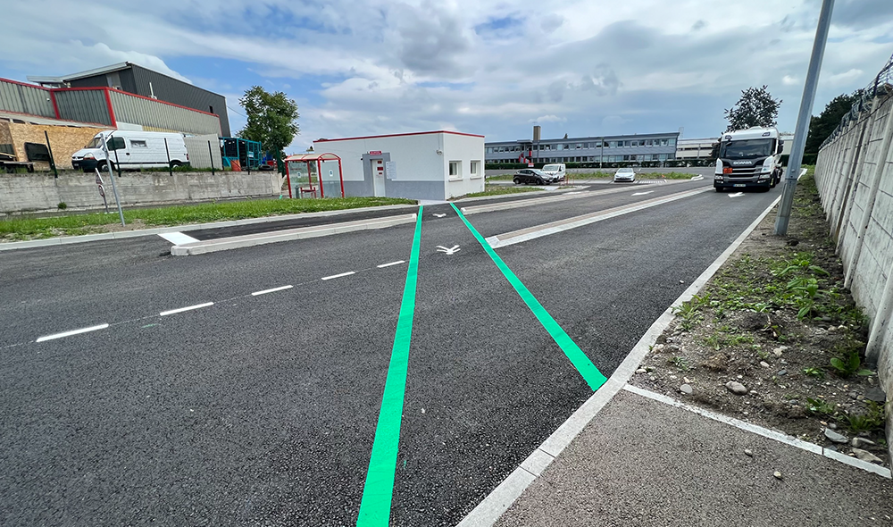 F. L : Et pour évaluer la robustesse de ce matériau, un bureau d’étude est venu en appui à notre analyse. Avec la prise en compte des spécificités d’usage, liées aux manœuvres fréquentes des poids lourds, le regard expert a validé la durabilité du matériau. Finalement, l’enrobé végétal présente la même résistance et durabilité qu’un enrobé classique !