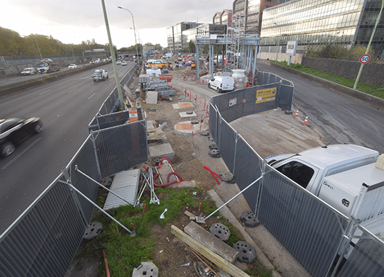 C’est sur cette station, enclavée entre le périphérique et les bretelles d’accès et de sorties, située sur le boulevard périphérique de Paris que cet escalier de chantier a été installé.