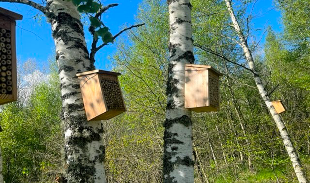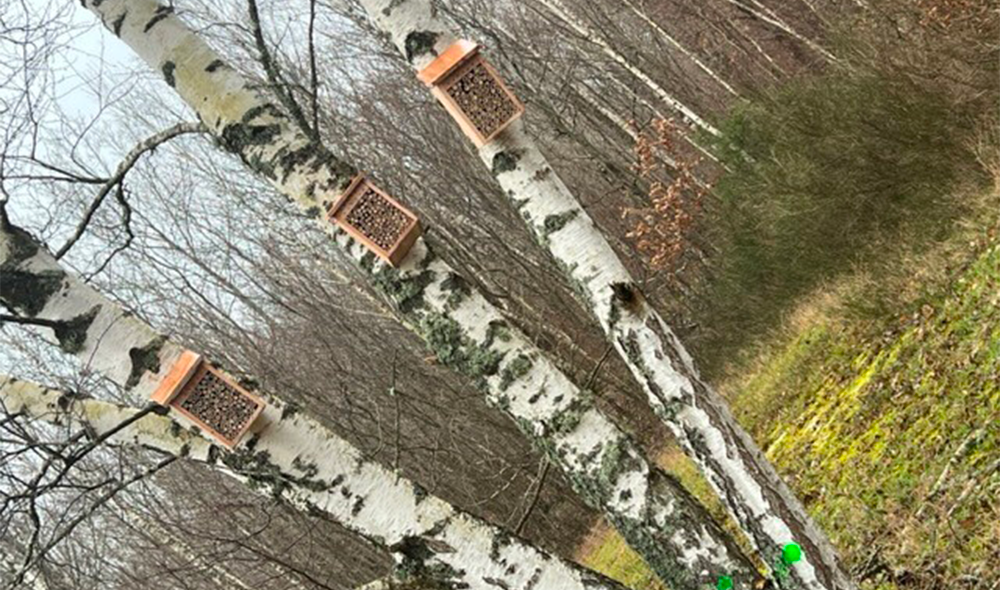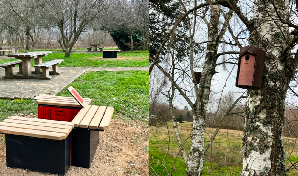 R.D : Dans un premier temps, une trentaine de nichoirs à oiseaux ont été positionnés le long du parcours. Tantôt en bois, en terre cuite ou en pierre, leur forme s’adapte aux différentes espèces locales d’oiseaux. La présence de tous ces oiseaux (notamment la mésange charbonnière) nous a par ailleurs aidés à lutter contre les chenilles processionnaires qui pullulent dans la région des Vosges.