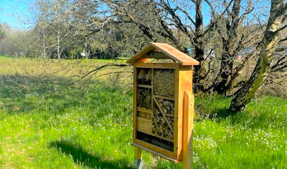 On retrouve également des ruchers d’abeilles sauvages. Il s’agit d’une race d’abeille noire qui se conforme à son rôle de pollinisateur sans produire de miel. Cette espèce est souvent prise pour cible par les abeilles domestiques qui les voient comme des concurrentes pour la chasse au nectar. Nous avons décidé de leur offrir un dortoir pour les protéger et garantir la pollinisation de la prairie.