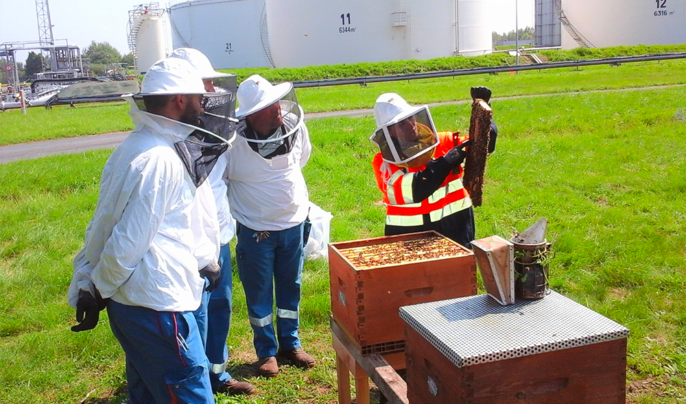 Thibault LEMERY : A partir de ce constat est venue l’idée suivante : pourquoi pas se passer de nos capteurs électroniques et préférer les abeilles comme indicateur de la qualité de l’air de nos sites pétroliers ? Les recherches m’ont amené à contacter Apilab et BeeCity, deux sociétés spécialisées dans la biosurveillance et les activités d’apiculture et d’élevage d’insectes. Leurs expertises ont été un appui précieux pour implanter des ruches sur le dépôt de Valenciennes.