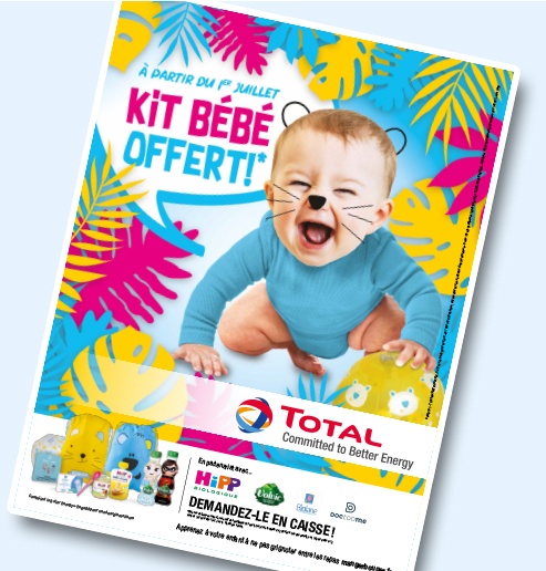 (1) Dans les stations-service du réseau TOTAL participantes à l’opération, dans la limite de 250 000 kits bébé offerts, soit 125 000 kits 0-12 mois et 125 000 kits 13-24 mois. Un kit par enfant.