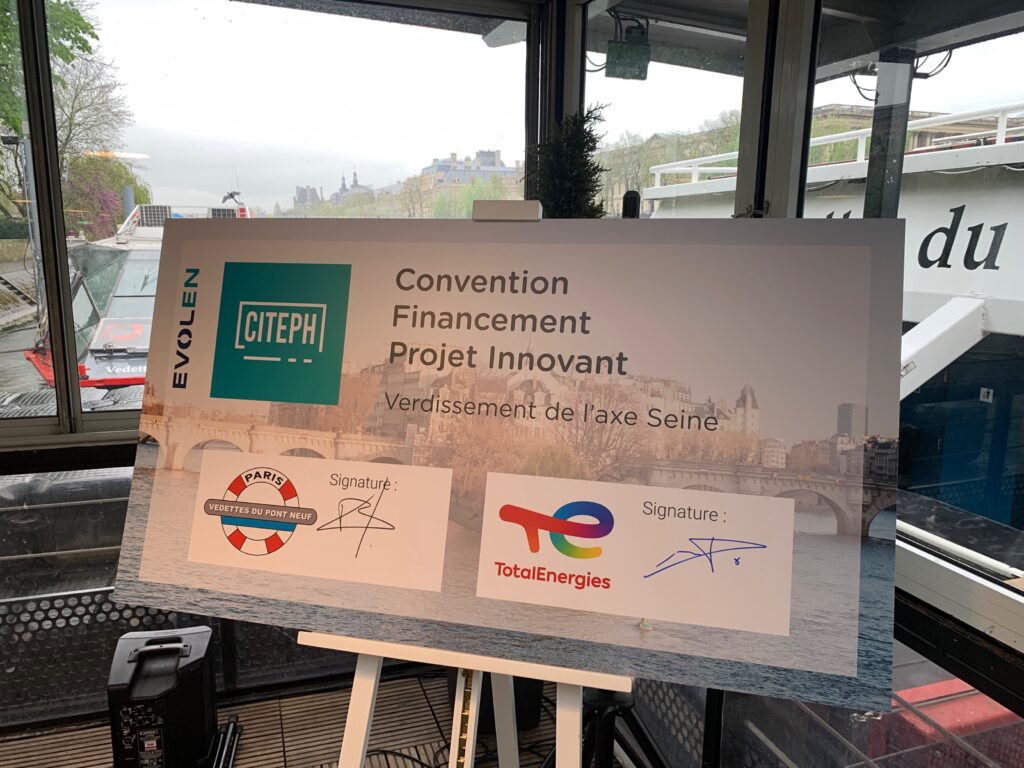Le 8 avril dernier, Vedettes du Pont Neuf et TotalEnergies ont signé la convention CITEPH pour développer ensemble cette solution innovante de conversion des bateaux de promenade en moteur 100% électrique à Paris.