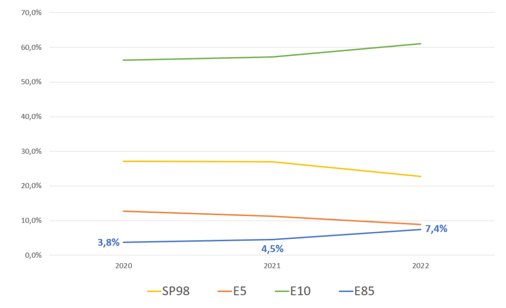 Résultat : si en 2020 l’E85 représentait 3,8% du marché des essences chez TotalEnergies, il s’établit à 7,4% en 2022 !