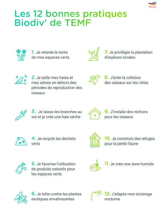 En écho aux 12 Règles d’or sécurité, le livret des 12 bonnes pratiques Biodiversité fait sa sortie chez TotalEnergies Marketing France (TMF) et l’ensemble de ses filiales.