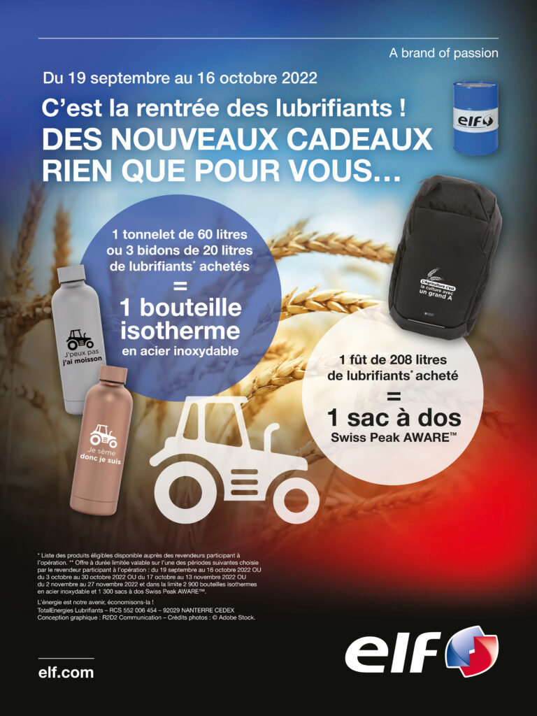 Le concessionnaire agricole commande des lubrifiants de la gamme Fuel Economy, produit de la marque TotalEnergies et ELF permettant de réduire la consommation de carburant et les émissions de CO2.