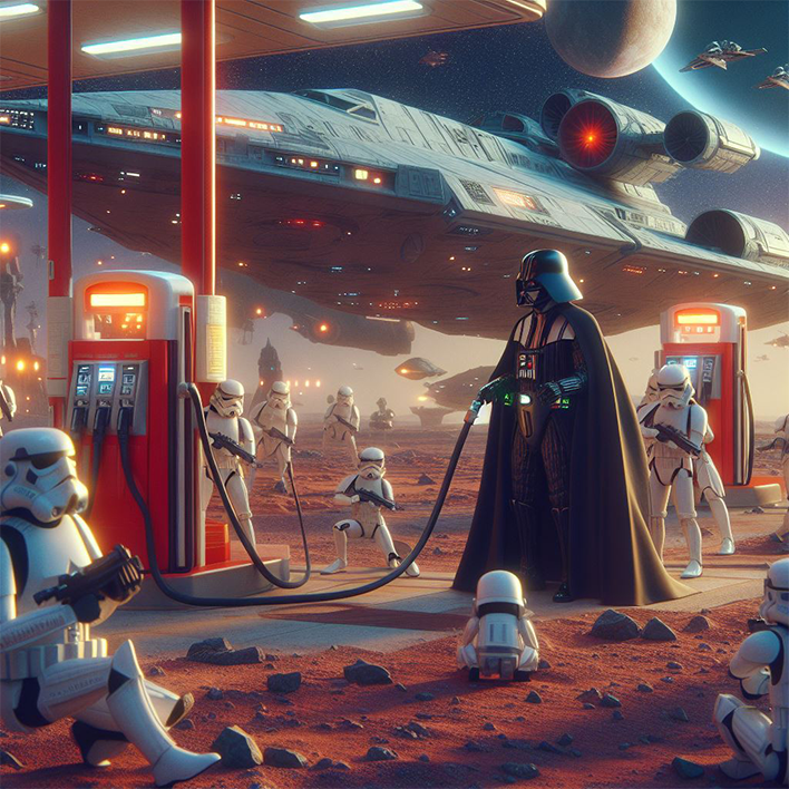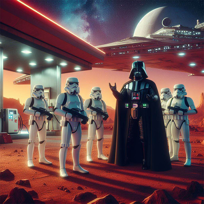 Mots-clés : Dark Vador / Espace / Galaxie / mars / Station-service / Team Play
