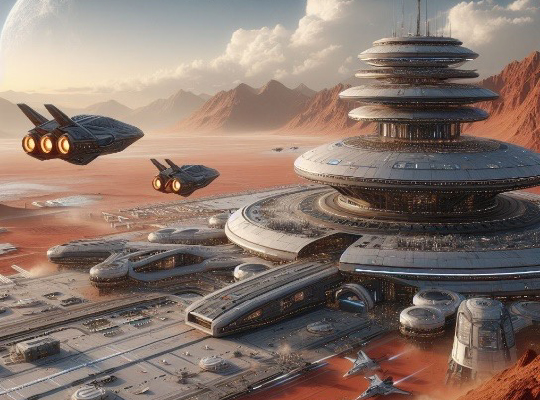 Implantée à proximité du Mont Olympe, aussi connu comme étant le plus haut volcan répertorié dans le système solaire, le complexe spatial