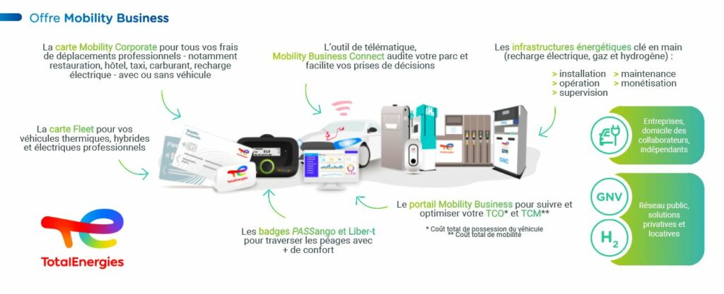 Avec l’offre Mobility Business, TotalEnergies met à disposition de ses clients professionnels les outils et solutions adaptés pour les accompagner vers une mobilité plus durable.