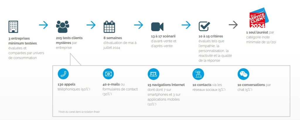 Cette récompense est attribuée selon plusieurs critères comme l’accès pour le client à l’information sur les applications ou les sites internet ou encore la qualité et le délai de réponse sur les différents canaux : réseaux sociaux, chatbot, mail, téléphone, etc.