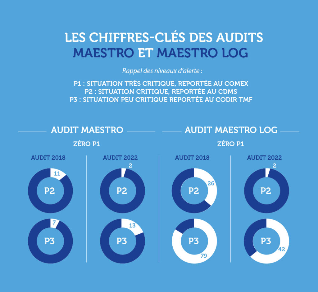 O. P. : Tous les éléments ne nous ont pas encore été transmis mais nous pouvons déjà établir un certain nombre d’enseignements. De manière générale, la maturité de TotalEnergies Marketing France s’agissant de l’acculturation aux principes One MAESTRO est en progression de 7 points par rapport à 2018. Cela se traduit, en particulier, par le recul du nombre d’observations inscrites dans les catégories P2 (reportées au niveau du comité directeur de la branche M&S) et P3 (reportées au niveau du comité directeur de TotalEnergies Marketing France). Prenons l’audit MAESTRO. Nous sommes passés de 11 P2 à seulement 2. Il s’agit de situations dégradées liées, d’une part, à la gestion des permis de travail et, d’autre part, au processus de consignation électrique.