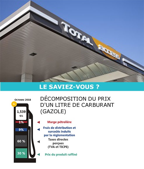 Le “mouvement des gilets jaunes” s’inscrit dans un contexte de prix des carburants tendu, avec :