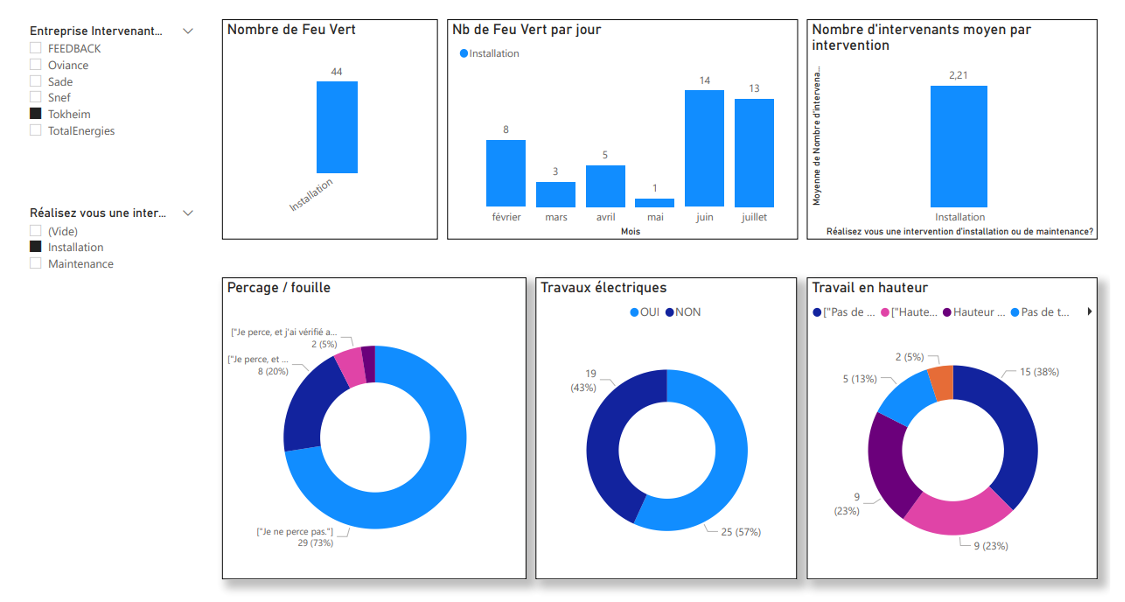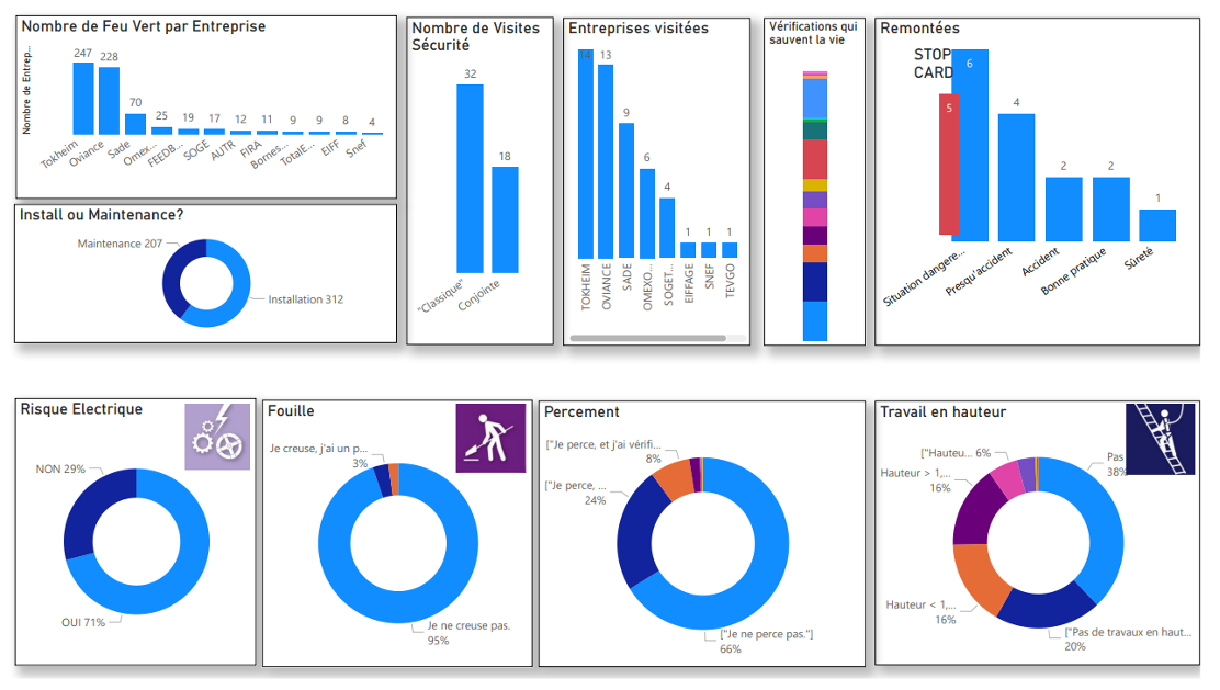 Pour chaque questionnaire rempli ou information remontée, toutes les données sont synthétisées dans un PowerBI, solution d’analyse traitant les réponses dématérialisées sous la forme de tableaux dynamiques.