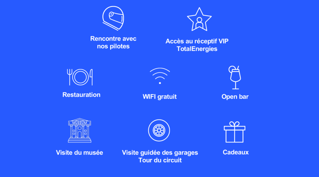 La direction Compétition de TotalEnergies vous propose de vivre un moment exceptionnel durant la mythique course des 24H du Mans dans l’espace VIP TotalEnergies, sur l’un des meilleurs spots du circuit, la Courbe Dunlop !