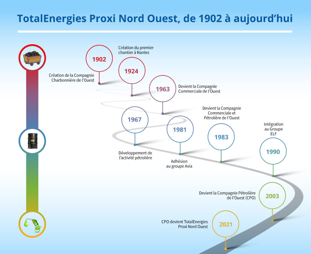 Les 122 années d’évolution forgeront la filiale, aujourd’hui connue sous le nom de TotalEnergies Proxi Nord Ouest !