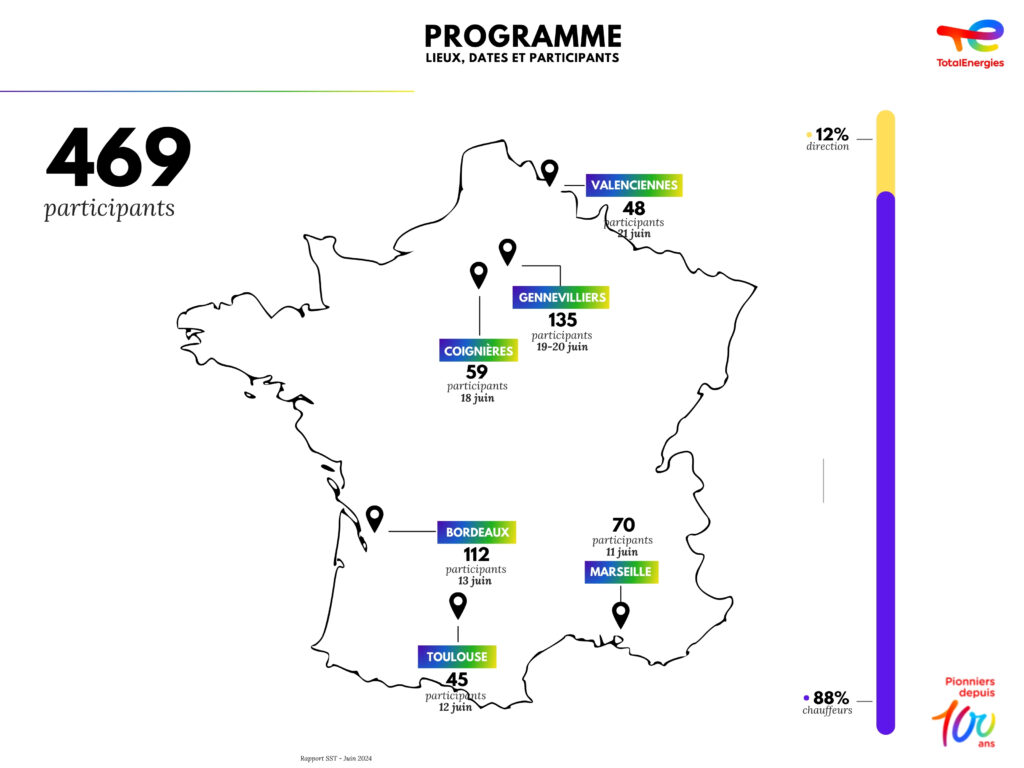 TotalEnergies Marketing France a organisé le Safety Month, une initiative d’envergure qui met l’accent sur la sécurité des compagnons et des chauffeurs qui travaillent tous les jours pour TMF et sur l’importance pour tous les collaborateurs d’incarner cette valeur grâce à de nouvelles approches comme les causeries ou les neurosciences.