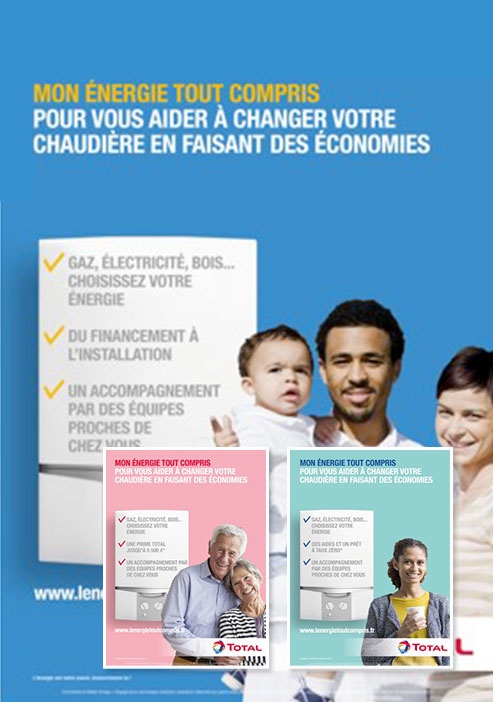 • Une offre de service : Total accompagne pas à pas ses clients, du choix de l’énergie jusqu’à l’installation du nouvel équipement, avec des aides financières, administratives et la sélection d’un réseau d’installateurs professionnels proches de chez eux.