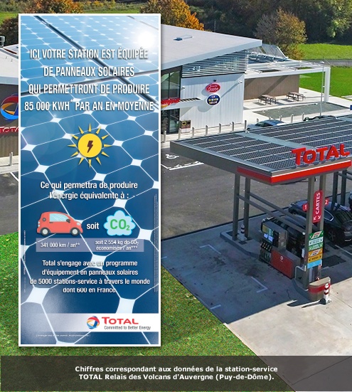 Total a inauguré le 26 août dernier sa 1000ème station-service équipée de panneaux solaires à Marrakech (Maroc). Une nouvelle étape symbolique dans le projet mondial de solarisation des stations-service du réseau du Groupe, lancé fin 2016 et visant à réduire les émissions de CO2 des stations de plus de 50 000 tonnes par an. Cette station désormais équipée de 14m2 de panneaux photovoltaïques va permettre de produire annuellement 45 mégawatt-heures d’électricité. Elle réduira ses émissions de CO2 de 30 tonnes par an.