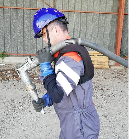 Force est de constater que certains chauffeurs ressentent des douleurs localisées dans les bras, aux épaules et au cou lors des tractions du flexible de distribution sur l’épaule. Olivier BATARD, responsable HSEQ chez CPO s’est donc mis en quête d’un EPI pour soulager leurs douleurs.