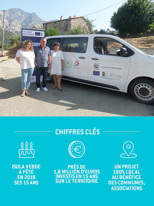 Parmi les trois projets retenus par Total Corse, un s’est concrétisé cet été : le transport communal social et culturel porté par la commune de Bocognano. L’objectif est de retisser les liens entre des communautés villageoises et une communauté citadine. A court terme, il permettra aux gens du village à mobilité réduite de retrouver une liberté de mouvement.